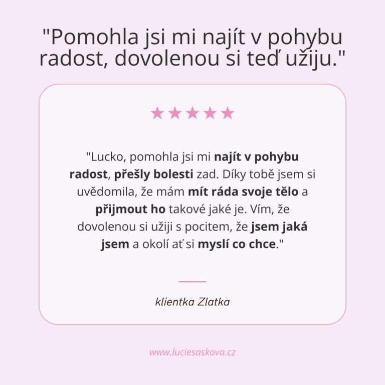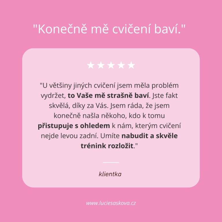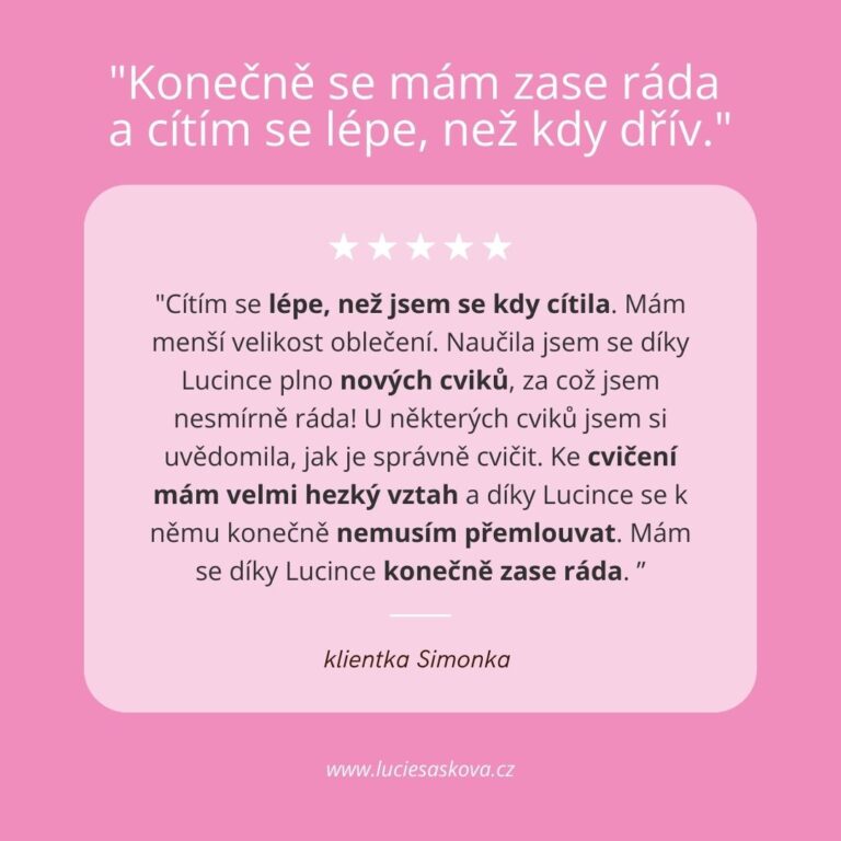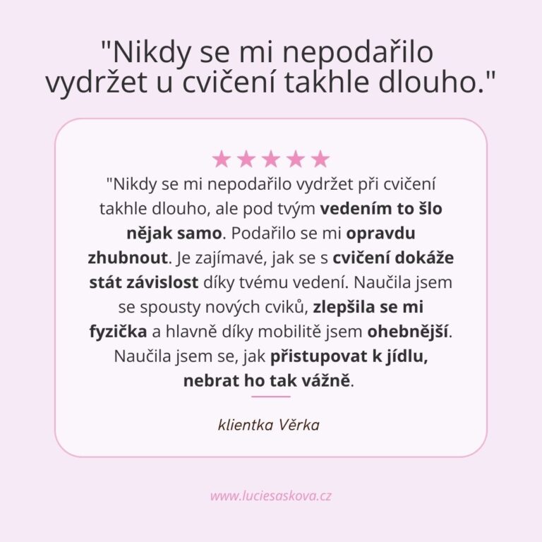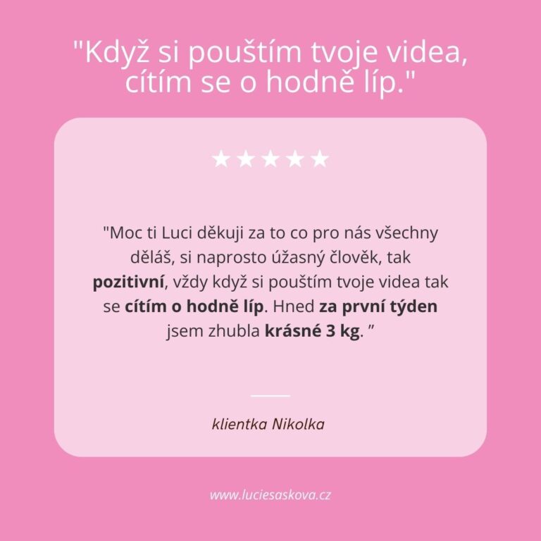 „Lucky tréninky jsou úžasný! Netrvají věčnost, zvládne je i začátečník a člověk se po nich cítí skvěle. A hlavně vidí výsledky!“