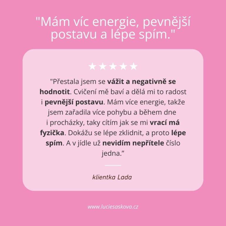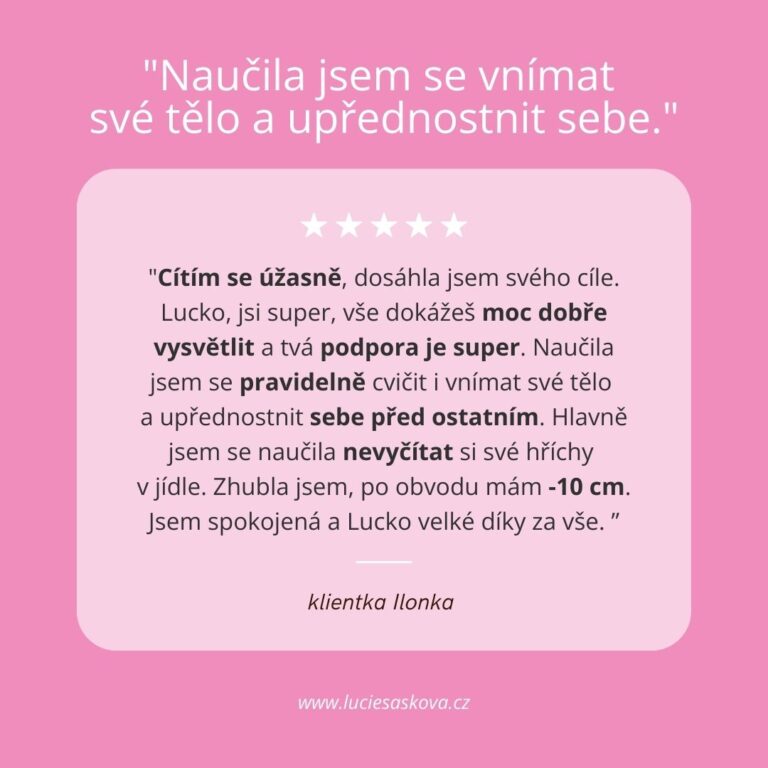 Těší mě, jsem Lucie. Dlouho jsem věřila, že čím víc budu dřít a odpírat si, tím blíž budu k tomu, cítit se dobře ve svém těle. Místo toho jsem ale byla vyčerpaná, plná výčitek a pořád jsem měla pocit, že nejsem dost.