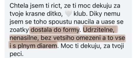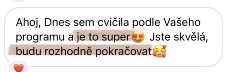 „Výsledky vidím hlavně na zadku. Nevěděla jsem, jak začít a spoustě cviků jsem dřív nerozuměla. Lucka všechno krásně vysvětluje, takže mám jistotu, že cvičím správně. Navíc můžu cvičit z pohodlí domova, což je pro mě s malými dětmi ideální.“