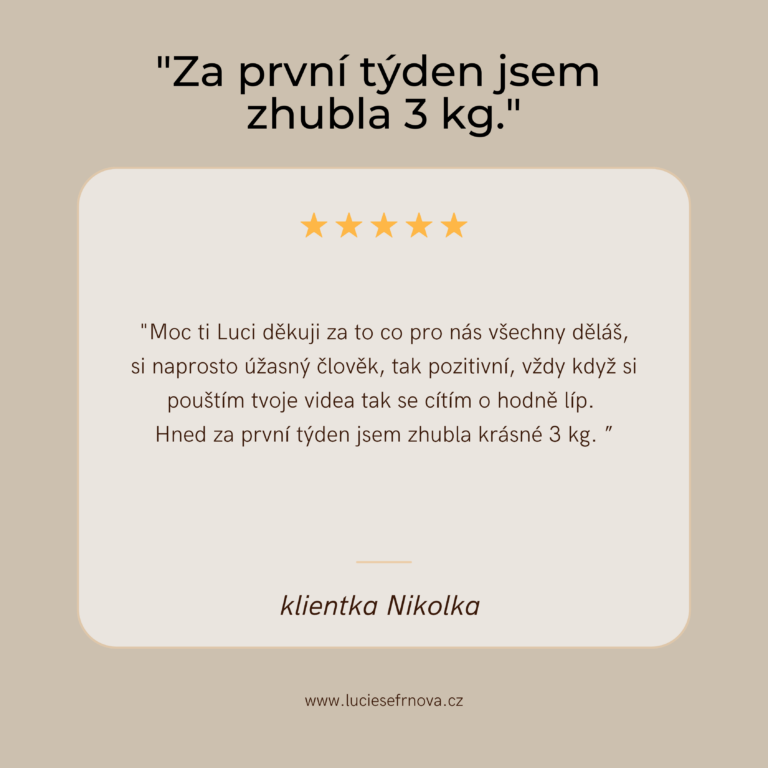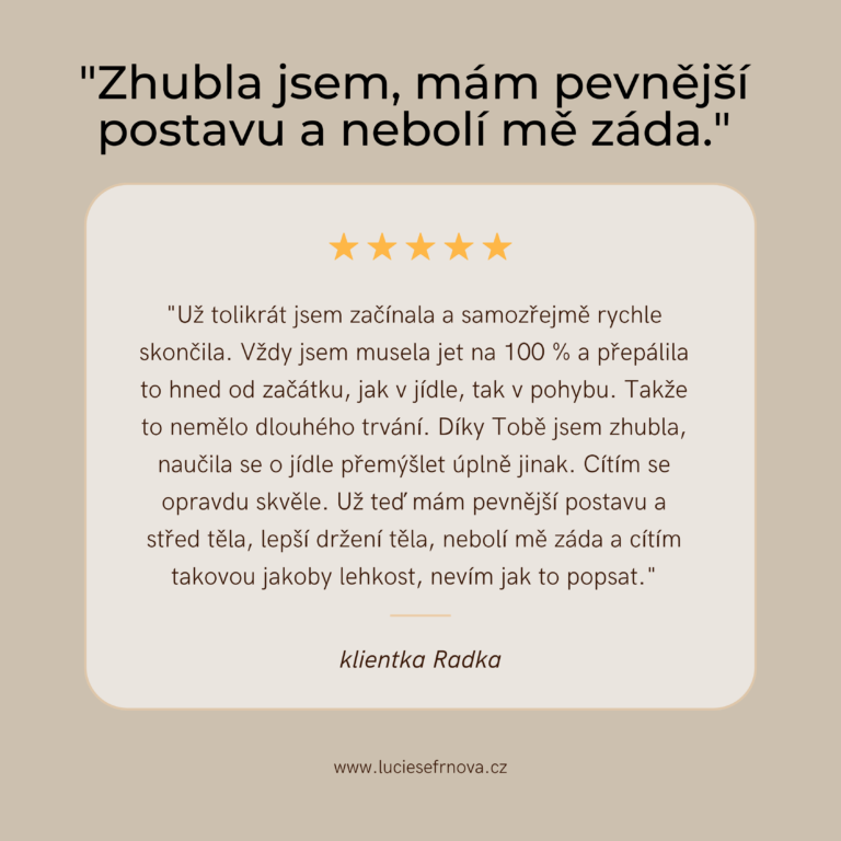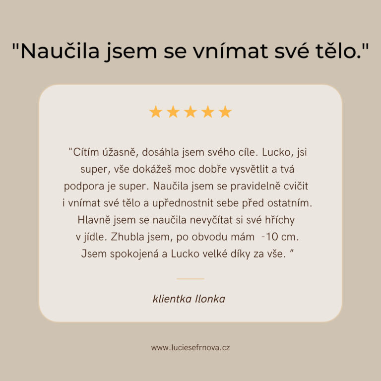 "S Luckou jsem zhubnul -22 kg za 4 měsíce! Naučila mě, jak se správně stravovat. Spolupráci s ní doporučuju, ví o čem mluví a má parádní přístup k lidem."