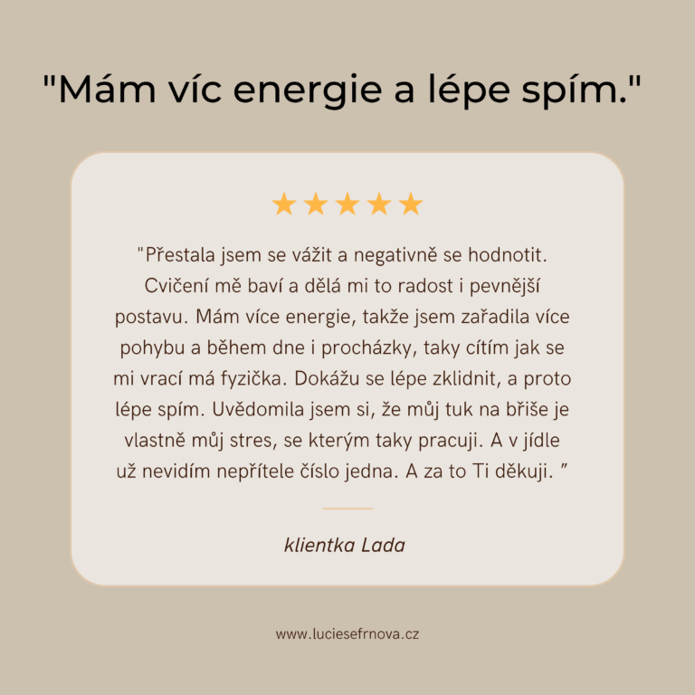"Chápu, že máš plný kalendář, sama to znám. Proto jsem vytvořila program tak, aby zapadl do života i těm nejvytíženějším ženám. Nemusíš trávit hodiny v kuchyni nebo ve fitku – stačí pár praktických kroků, které tě nezahladí, ale posunou k cíli."