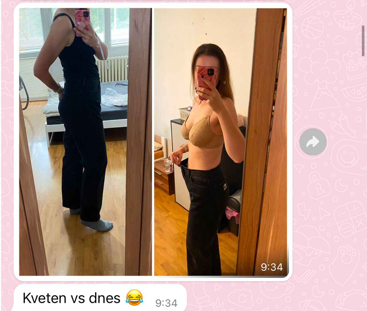 👗 …si zase oblékáš menší oblečení, které jsi už roky odkládala ve skříni. Najednou vytáhneš šaty, které sis kdysi schovala „na lepší časy“, a zjistíš, že ti perfektně padnou.
