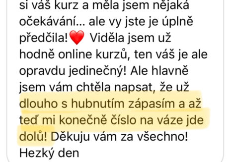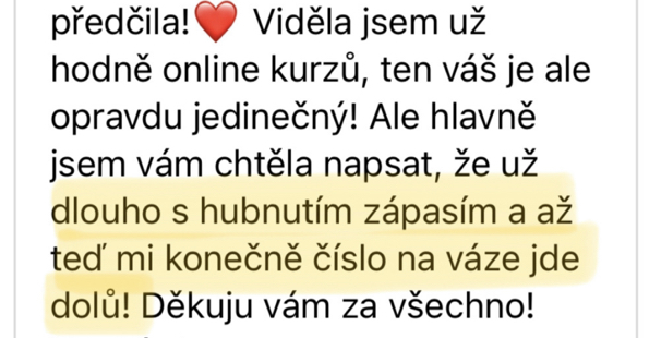 "Tohle je časté a úplně tě chápu. Problém většiny přístupů a metod je, že jsou příliš přísné, moc obecné nebo nepočítají s tím, že každý má jiný životní rytmus. V tomto programu tě naučím, jak hubnout udržitelně a bez výčitek, aniž by ses cítila, že selháváš. Už za sebou mám více než 1000 klientek, které díky mému přístupu pochopily, že to jde i jinak."